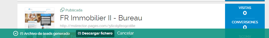 Cliquez sur "Télécharger Leads" et n'oubliez pas que autant que vous téléchargez les leads vous pouvez continuer à utiliser Landing Optimizer sauf l'éditeur. Quand le processus aura terminé vous pourrez télécharger le fichier complet avec le bouton de "Télécharger".
