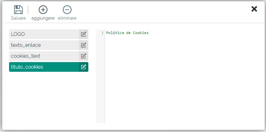 - Scrivere tra le parentesi graffe il nome delle variabili definite. Esempio: {{LOGO}}. Il nome delle variabili globali deve rispettare la definizione definita in precedenza. Esattamente con il nome della variabile, rispettando i simboli, spazi, le maiuscole e minuscole.