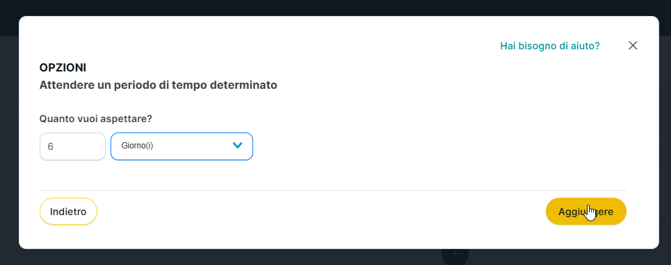 Definisci l’unità e la durata dell’attesa di cui hai bisogno: minuti, ore, giorni, settimane o mesi. Clicca su "Aggiungere".