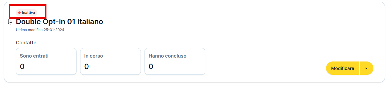 Noteremo che lo stato della card è cambiato: dove prima c'era un'etichetta verde "Attivo" sopra il titolo, ora appare un’etichetta rossa "Inattivo".