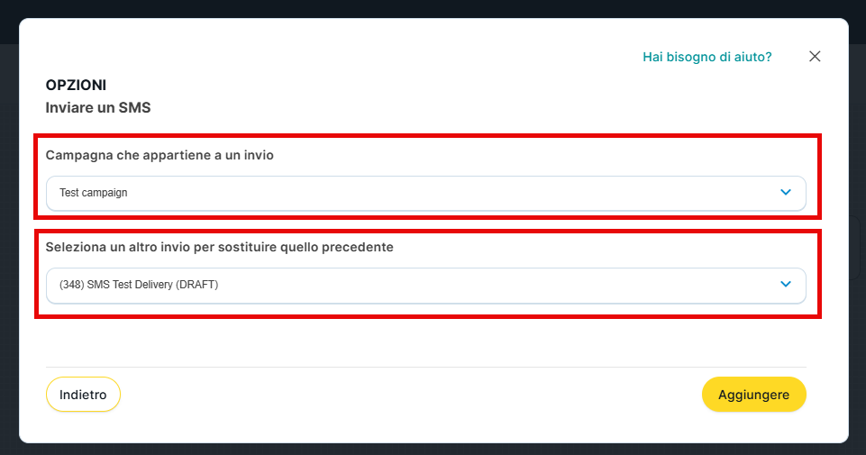 Si aprirà quindi una finestra in cui dovrai selezionare la campagna e l'invio corrispondente.