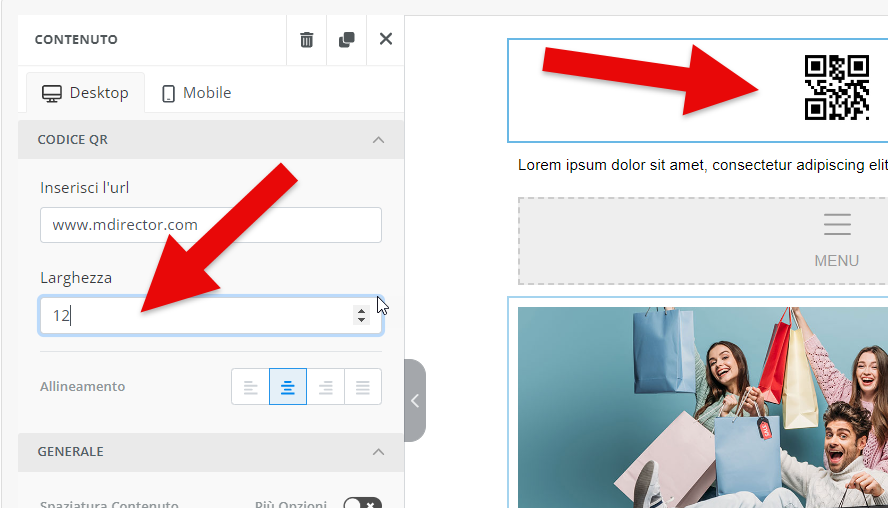 Per modificare le dimensioni di questo codice QR, fallo dal campo "Larghezza" indicando il valore corrispondente.
