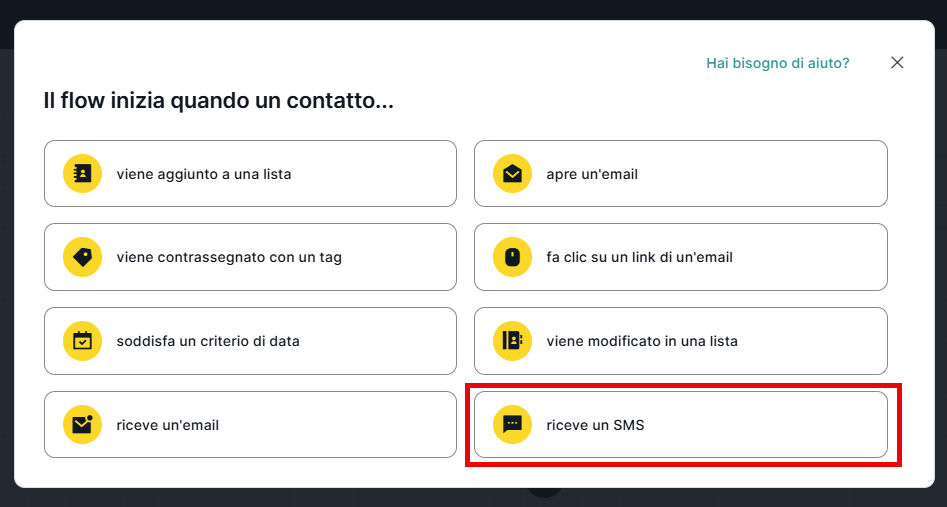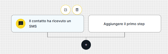 Quando desideriamo che l'evento che avvia un determinato flow di Automation sia che un contatto riceva un SMS, dobbiamo configurarlo dal punto d'ingresso "riceve un SMS".
