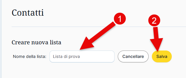 3. Compila il campo "Nome della lista" e salvalo con il pulsante giallo che dice "Salva"
