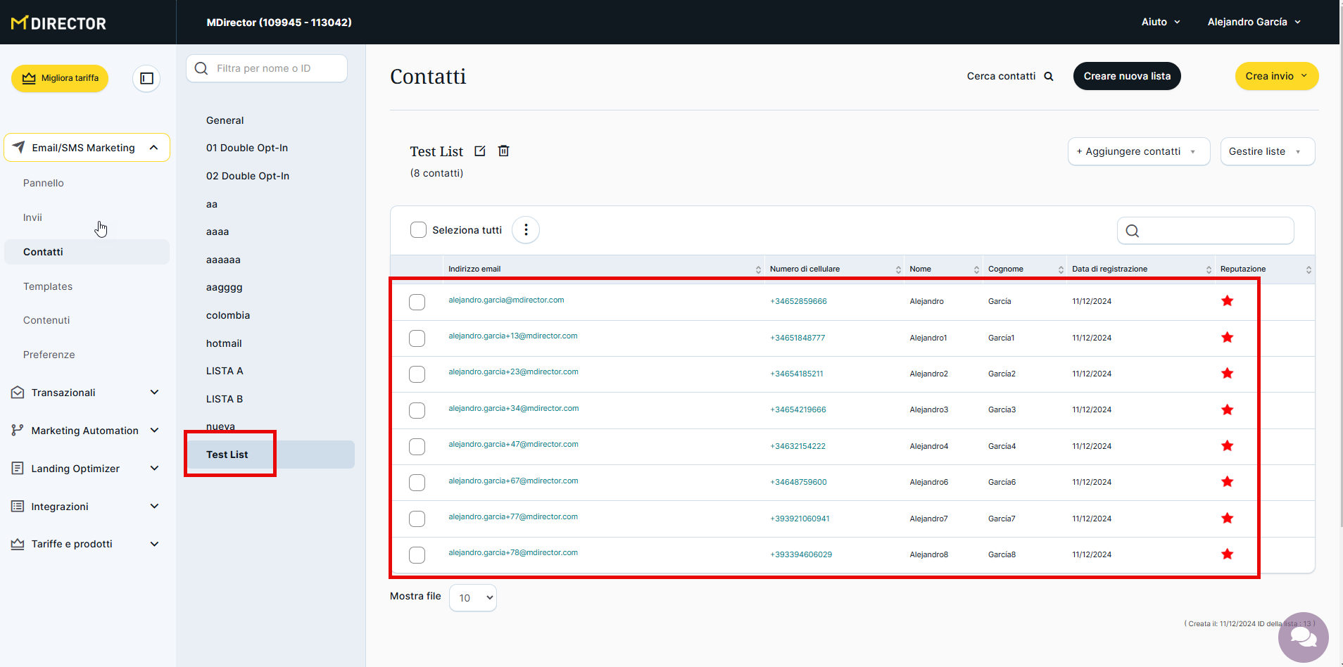 MDirector ti porterà direttamente a questa lista, ma per consultarla in qualsiasi momento, ricorda che puoi farlo dal secondo menu laterale che si apre nella sezione "Contatti" del servizio di Email Marketing.