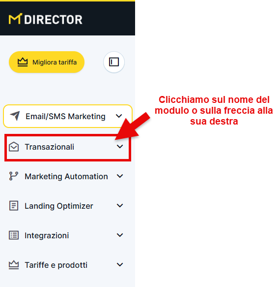 Come spieghiamo in questo articolo: https://mdtr.io/qIMIe, MDirector è una piattaforma multifunzionale per la gestione completa delle tue campagne di email e SMS. Gli strumenti che mettiamo a tua disposizione sono organizzati in moduli o servizi accessibili dal menu laterale, sempre visibile nel profilo sinistro dello schermo.