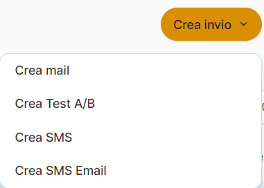 1. Cliccare sul pulsante Crea invio in alto a destra e cliccare su Crea SMS.Email.