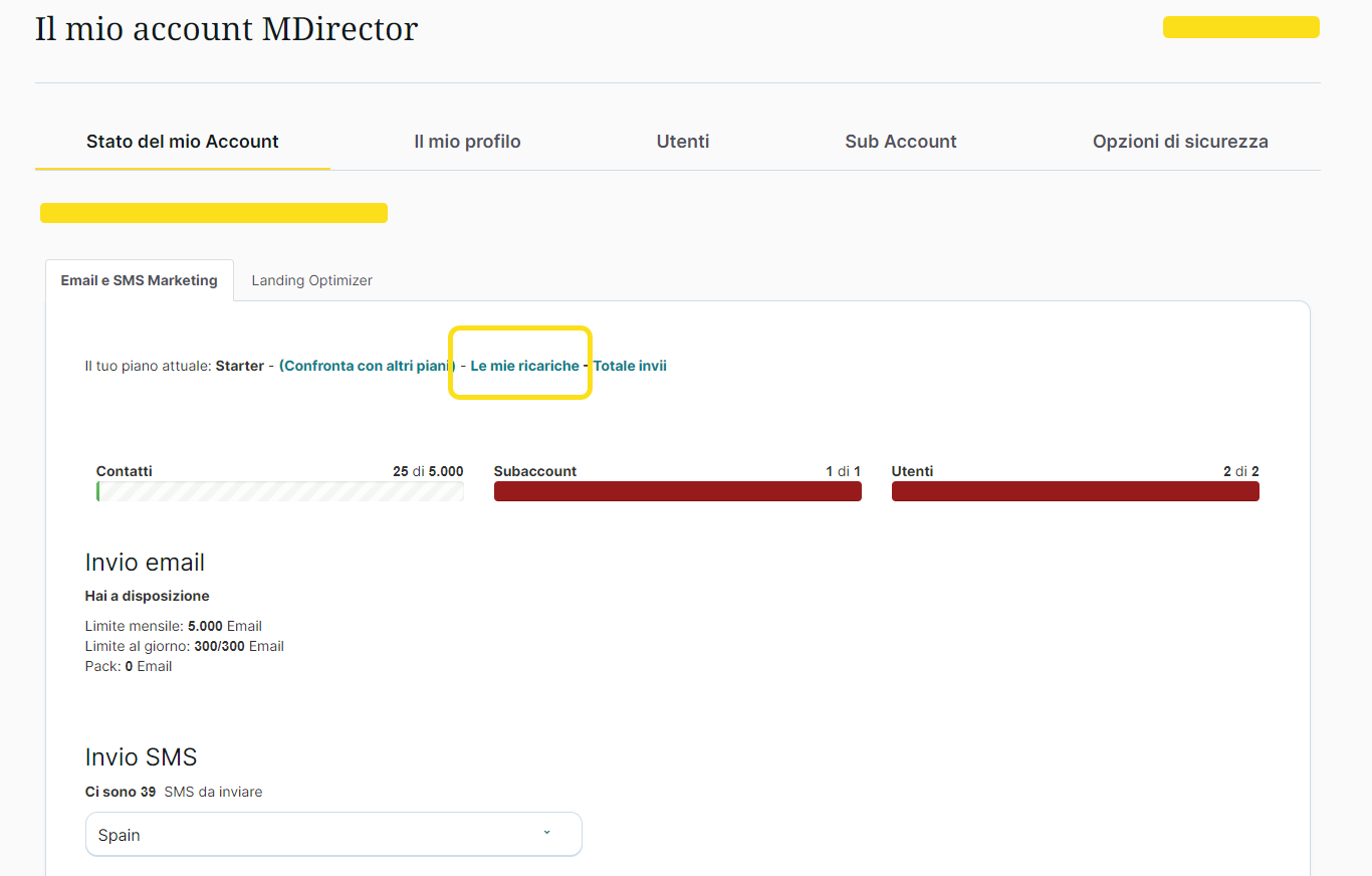 2. Fare click sul link "Le mie ricariche" nella sezione "Stato del mio Account"