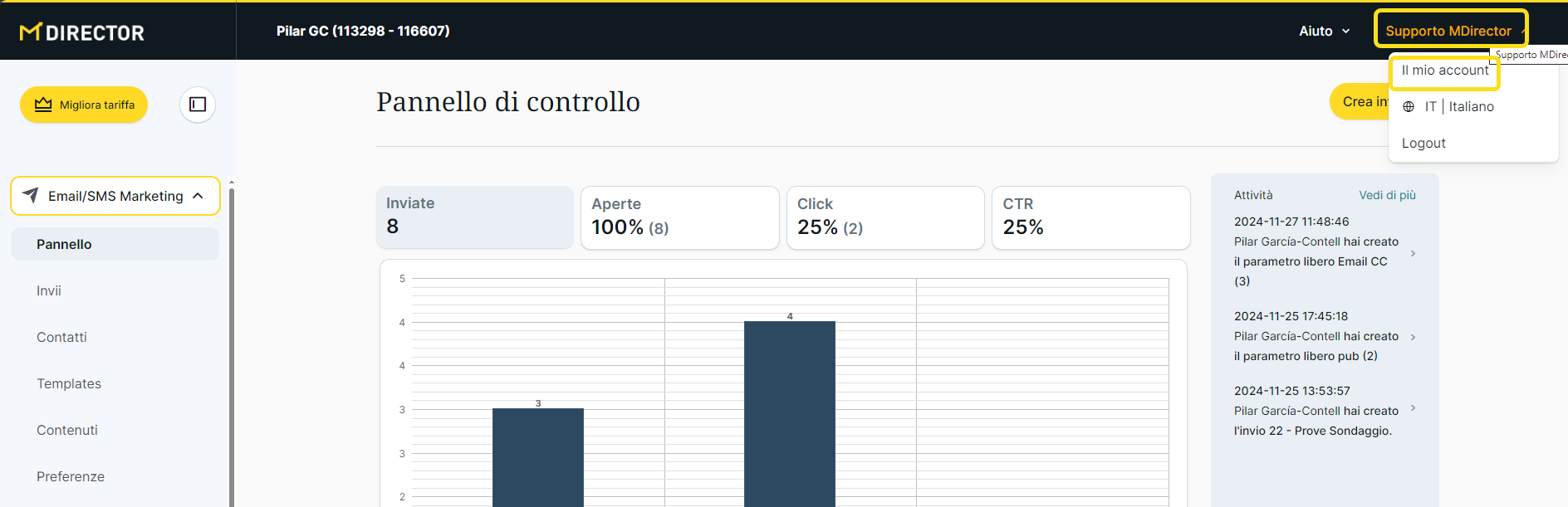 1. Fare click sul Menù utente e fare click su il mio account.