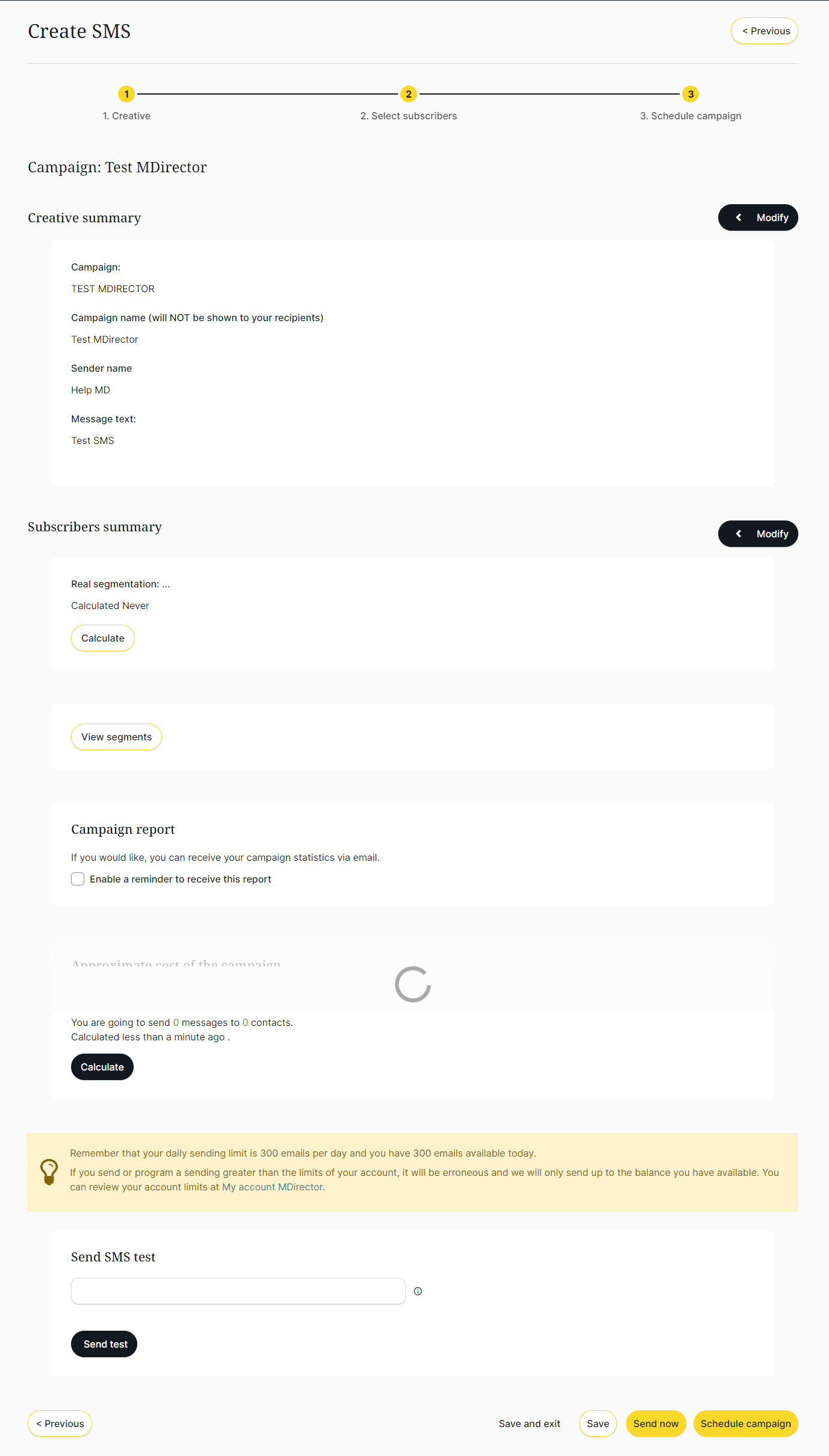 1. Fare click sul bottone Crea invio e fare click sopra Crea SMS.