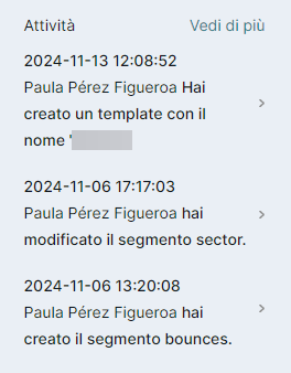 Al cliccare su "Vedi di più", avrai accesso al registro completo delle attività, inclusi i dettagli dell'utente che ha effettuato ogni azione.