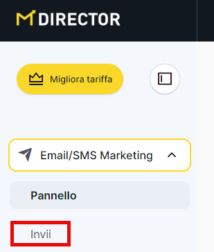 Per visualizzare i tuoi invii e fare un passo avanti, devi entrare nella sezione Email Marketing o SMS nella finestra "Invii".