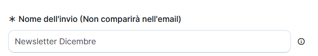 Per iniziare a creare un invio, la prima cosa da fare è assegnargli un nome. Questo non sarà visto dai tuoi contatti solo tu lo vedrai e ti servirà per poter identificarlo rapidamente in un futuro.