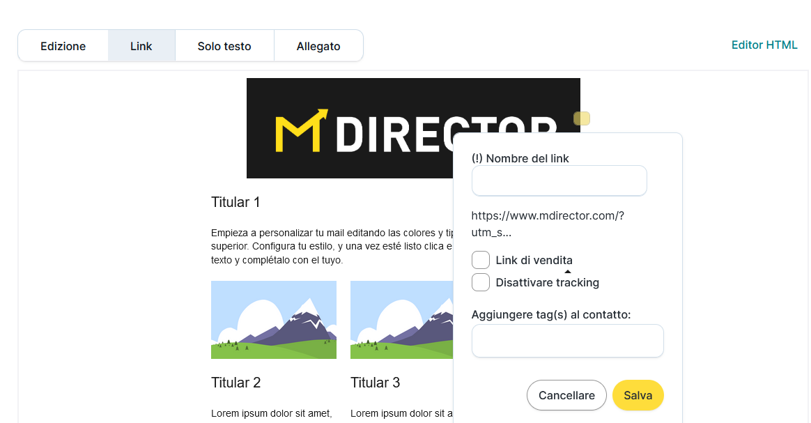 Se vuoi saperne di più sull'Editor HTML, clicca sul seguente link: https://mdtr.io/Kps5V