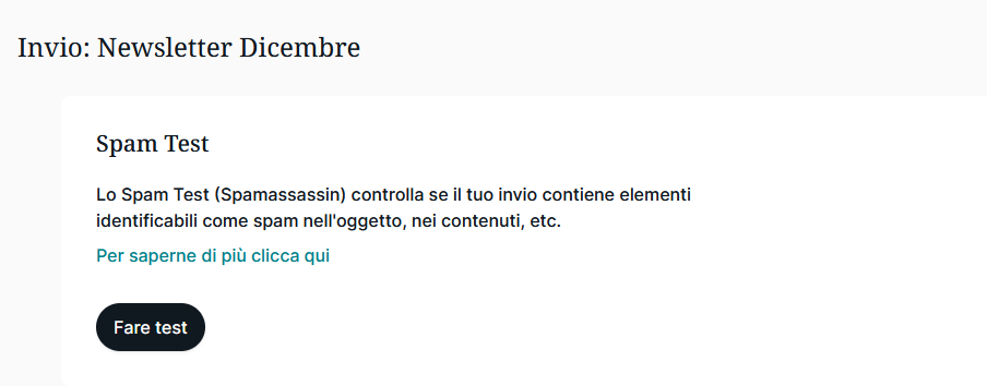 MDirector ha integrato SpamAssassin, uno dei test di spam più usato nel mondo, lo potrai consultare ogni volta che crei un invio, al passo numero 4 -Test.