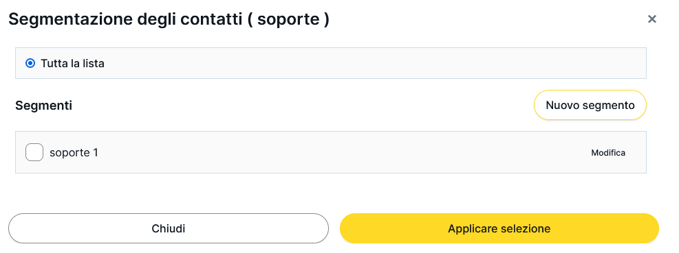 Nella finestra Segmenti dei contatti, seleziona la lista del segmento.