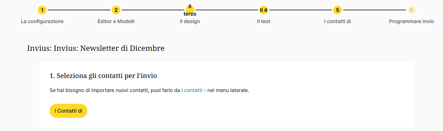 Quinto passo: Selezione dei contatti per l'invio