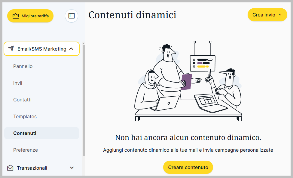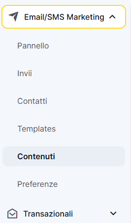 1. Fate clic sull'opzione I Contenuti nel menu laterale Email/SMS Marketing.
