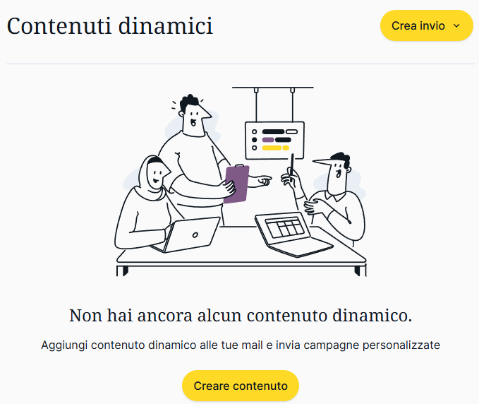 2. Entrerai nella sezione i Contenuti dinamici dove potrai creare i tuoi contenuti e renderli dinamici.