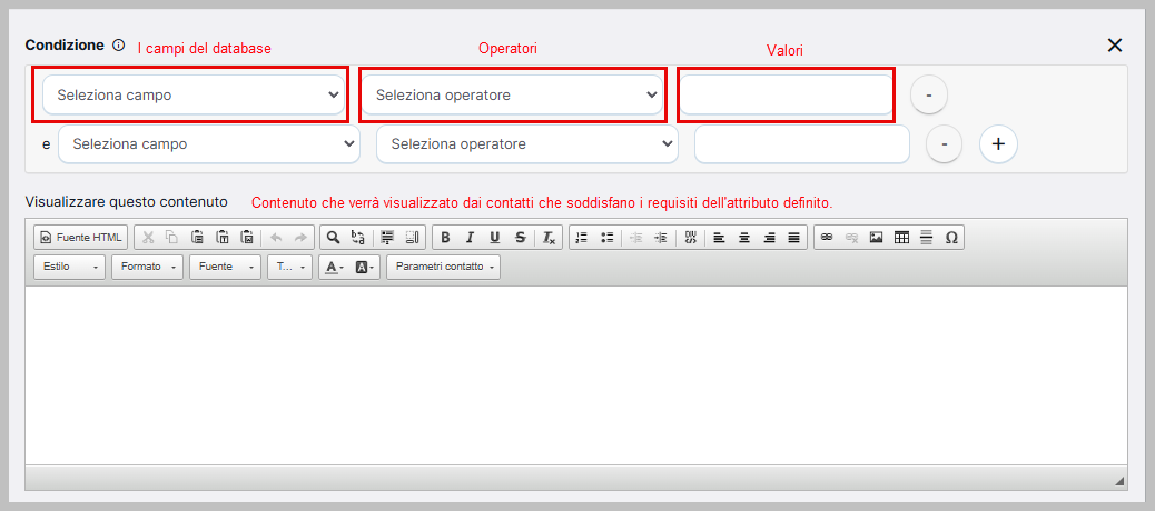 Contenuto: Questo è il contenuto che si mostrerà a un contatto che rispecchia il requisito degli attributi che hai definito.