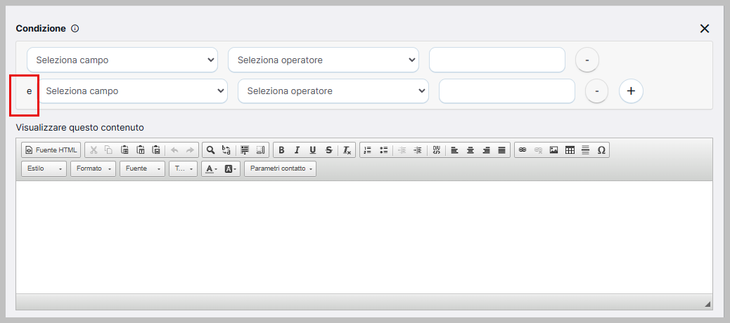 Aggiungi più condizioni, tutte quelle che desideri, cliccando sul pulsante Aggiungi condizione e includi in esse le caratteristiche dei tuoi contatti.