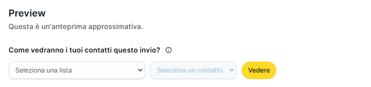 Si aprirà una finestra con il modulo: Come vedranno i tuoi contatti questo invio? Seleziona una lista e poi il contatto