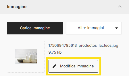 - Clicca sul blocco immagine all’interno del template.