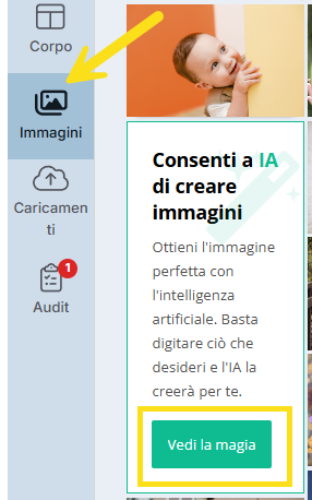 Il nostro editor migliorato ti consente di generare immagini con l’intelligenza artificiale, direttamente dalla piattaforma.