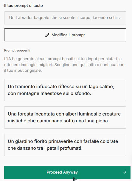 - Verranno mostrate opzioni alternative. Puoi sceglierne una o cliccare su “Procedi comunque” per usare la tua descrizione.
