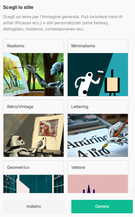 - Seleziona uno stile per la tua immagine oppure clicca semplicemente su "Genera".