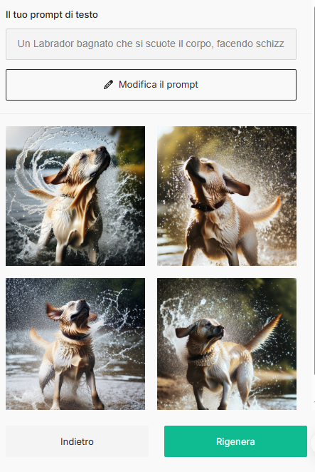- L’editor genererà diverse immagini tra cui scegliere. Puoi anche modificare il prompt per generare nuove opzioni.