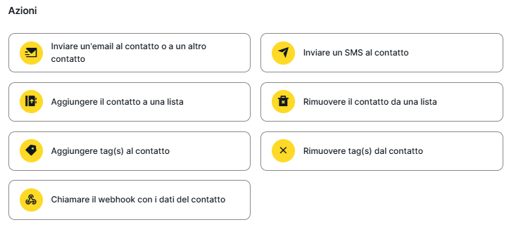 Queste azioni ti permettono di personalizzare l’esperienza dell’utente, attivare comunicazioni automatizzate e aggiornare le informazioni dei tuoi contatti.