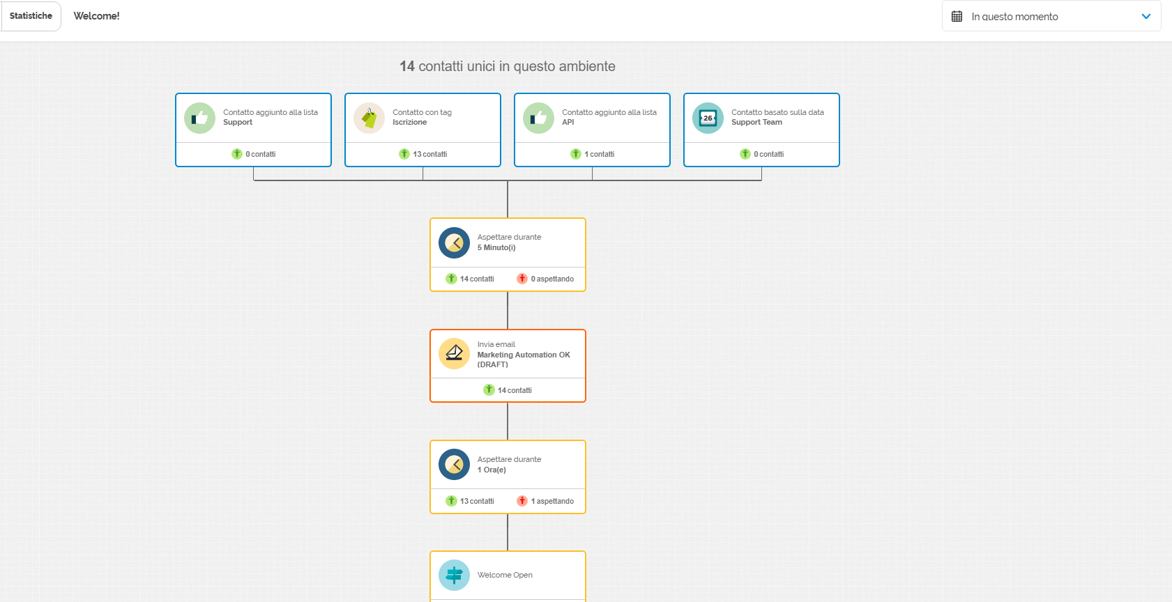 Avrai accesso alle statistiche in "tempo reale" facendo click sul link "Statistiche in tempo reale" che vedrai in ognuno degli ambienti creati.