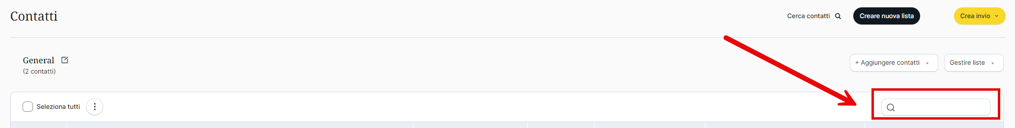 Nella scheda dei contatti, in qualsiasi lista, è possibile accedere a un utente specifico tramite ricerca.