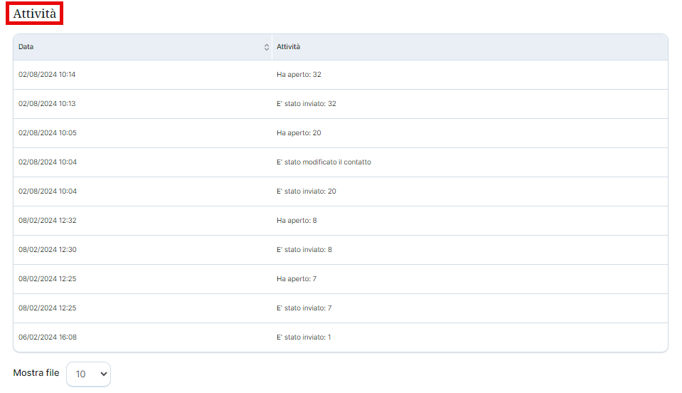 Alla fine di questa schermata è possibile visualizzare l'attività del contatto: