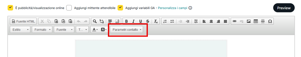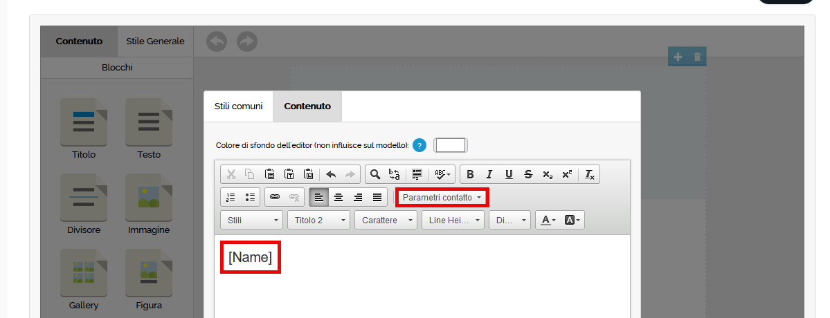- Cliccando sul pulsante "Campi di contatto" quando si tratta del contenuto della newsletter.
