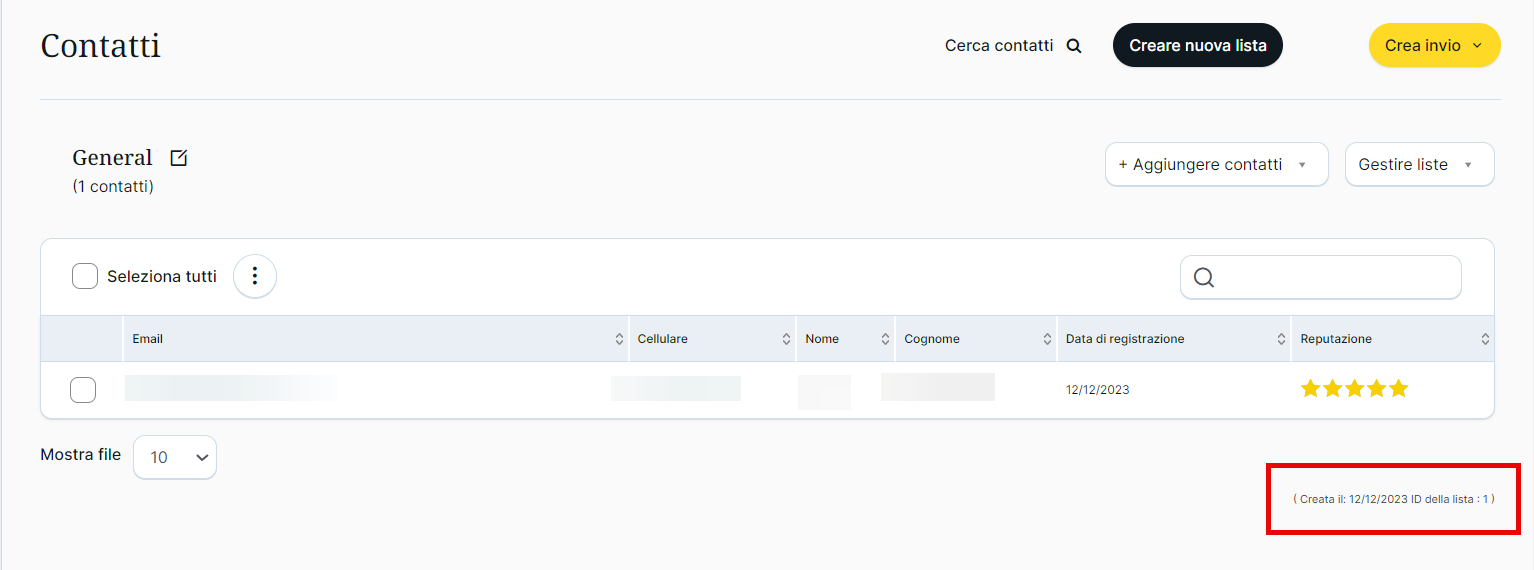 Per impostazione predefinita MDirector genera un elenco di contatti come "Generale", che sarà sempre presente in tutti i subaccount e non è possibile eliminarla. Oltre a questa, puoi creare diverse liste per gestire i contatti.