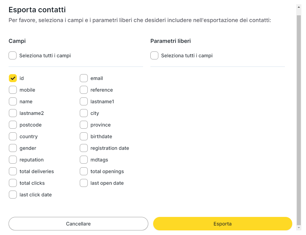 *Cliccando sulla casella "Seleziona Tutto" si possono scegliere tutti i contatti visualizzati, cioè da 5 a 100 contatti:
