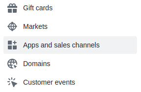 Una volta all'interno della sezione "Impostazioni", accedi a "Apps and sales channels".
