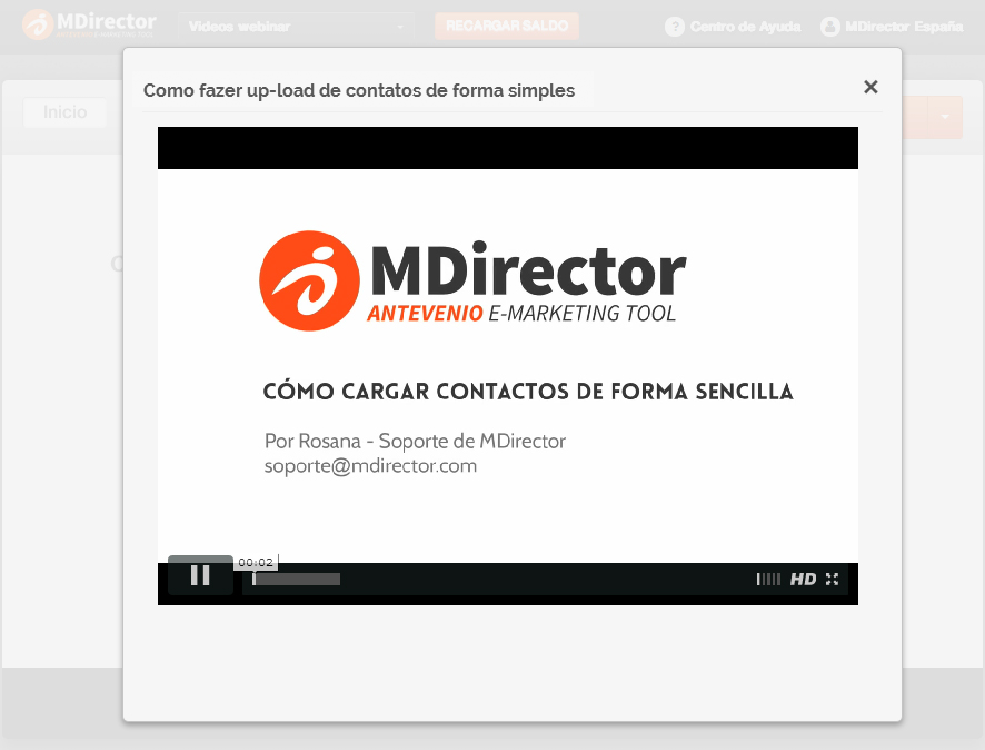 Uma vez que tenha carregado seus contatos e que tenhas realizado seu primeiro envio de Email, poderá recarregar seu saldo de EMAIL e SMS desde o ícone Recarregar saldo ou desde a página de produtos.