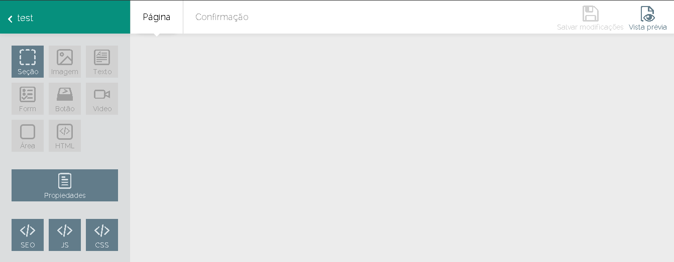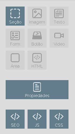 Este menu da esquerda contém os componentes chave para personalizar e administrar sua página. Aqui você poderá modificar o fundo, as fontes predeterminadas, ajustar as propiedades SEO e muito mais.