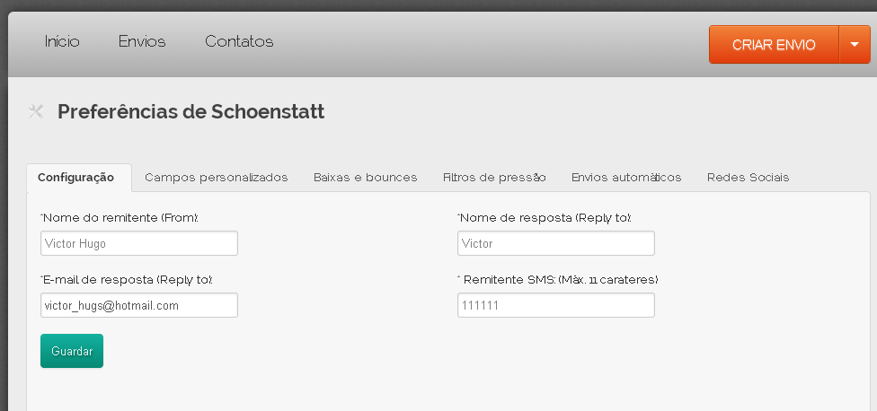 Nome do remetente (From): o nome que seus contatos irão ver quando receberem suas campanhas