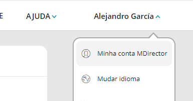 1. Faça clique no seu nome de usuário no canto superior direito e em "Minha conta MDirector" no menu que aparece.
