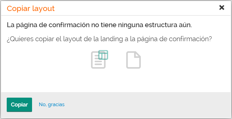 Caso tenha criado seu próprio template, MDirector perguntará se quer copiar tal template na página de confirmação. Dessa maneira copiará todos os elementos exceto o formulário.